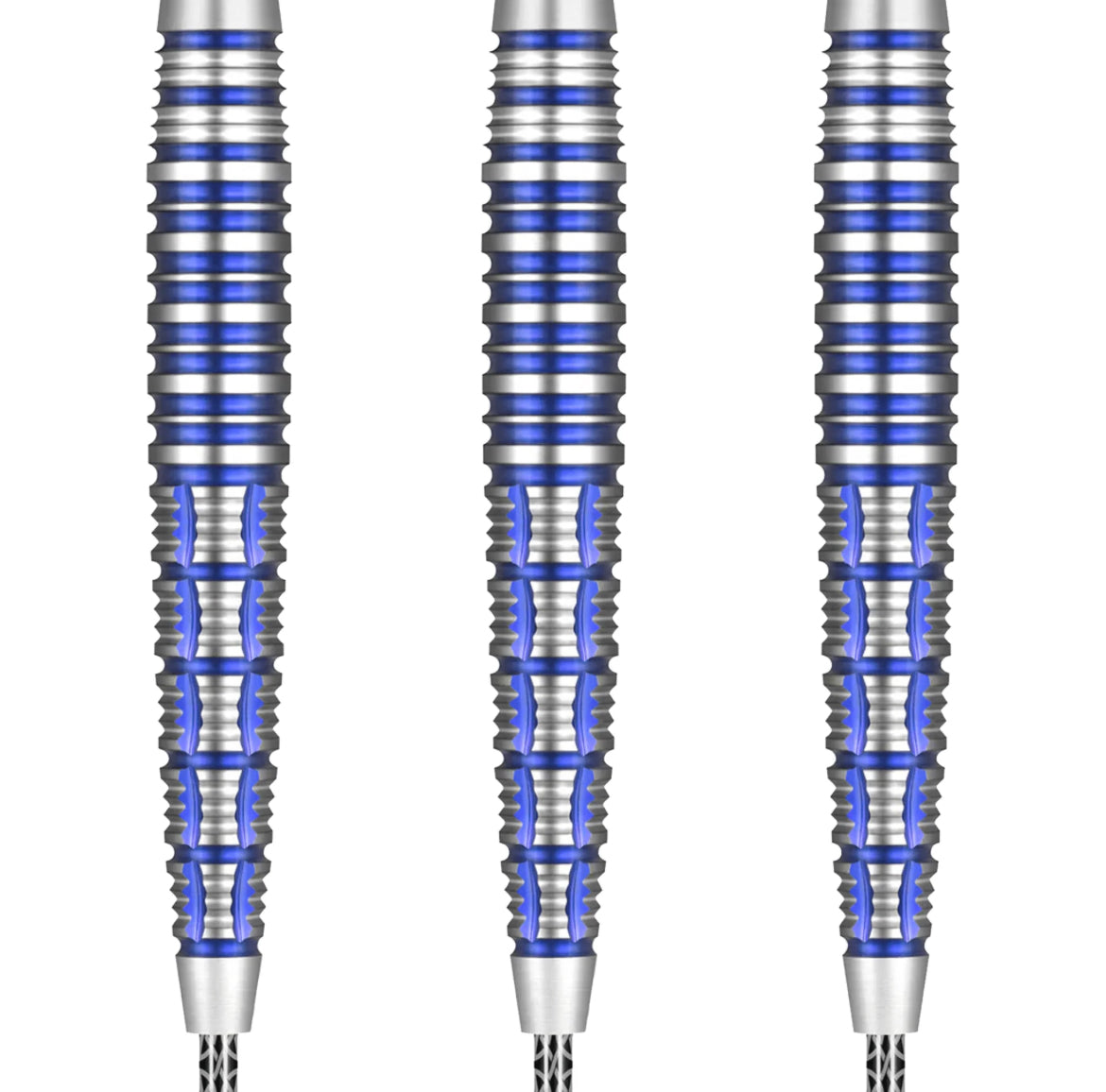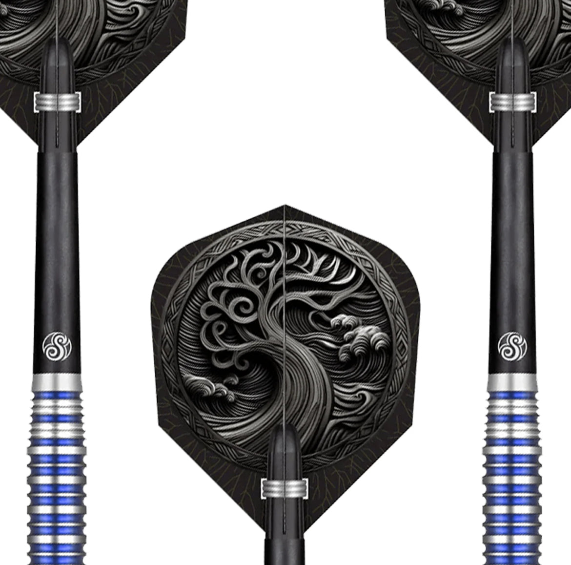 Balance sits just in front of the center. A rounded nose profile is cut with square grooves and milling, creating a moderate grip in all directions and ensuring smooth deflections. The apex grip, forged with layered cuts, commands a deep, undeniable reference point at this barrel's core. The tail, carved with consistent square grooves, delivers edges you can feel, ensuring every throw is a testament to power and control.