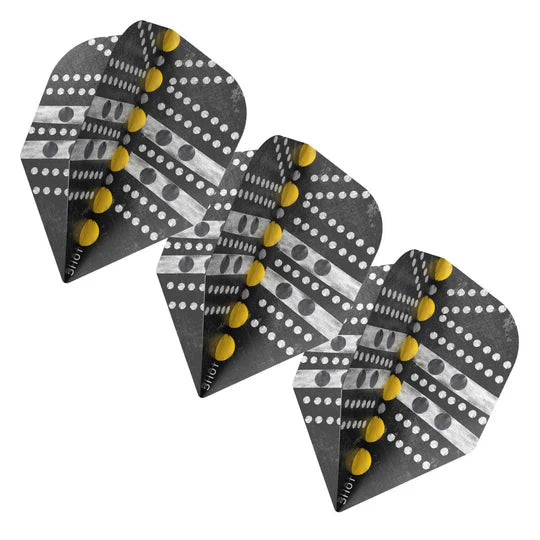 The African Warrior dart flight range completes the setup. With design inspiration taken from South Africa, each vibrant flight represents Devon Petersen's journey, love of colour, and warrior spirit.