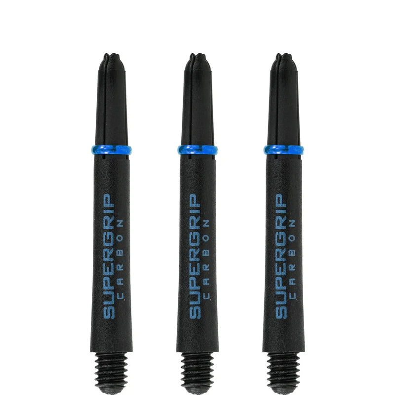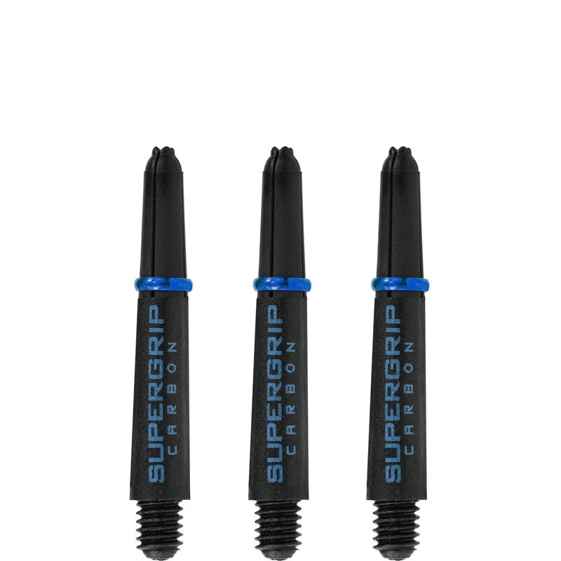 Harrows Supergrip Carbon Shafts - Ultra Strong Stems. Includes machined rings. Length: 45mm; (does not include thread - 5mm) Thread: 2ba Harrows Supergrip Carbon Dart Shafts - Black & Aqua