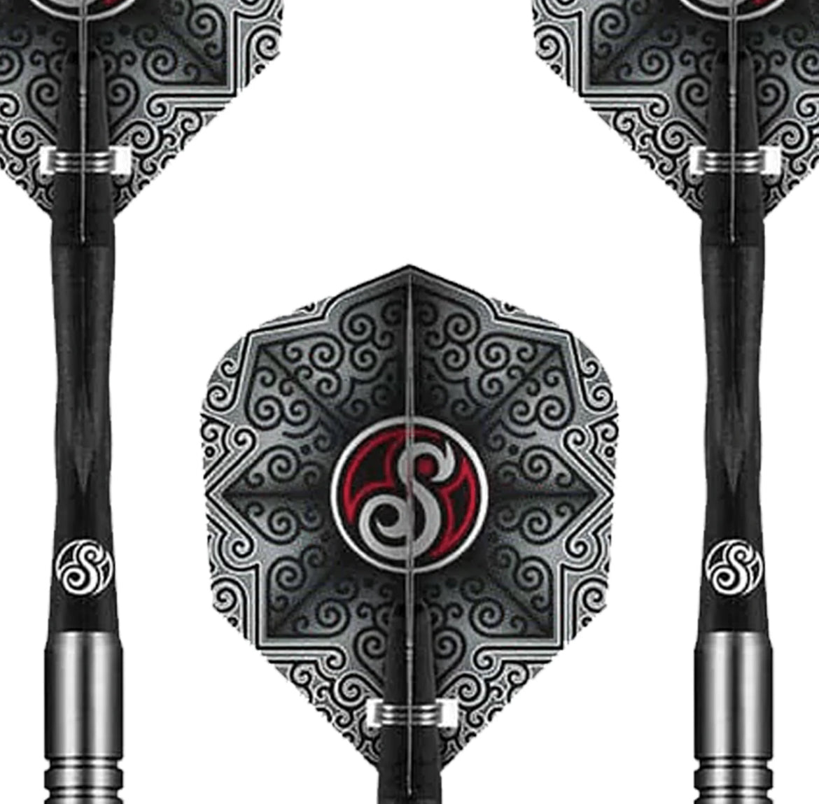 For Raymond Smith, there is a lot of science in this dart design's simplicity. The slimline barrel's groove pattern improves grouping capacity through clash friction, making the first dart act like a magnet. Slim barrels with medium to long points reduce loss of sight on trebles and also improve stacking options left, right, above, and below. There isn't a first dart you can't pass!